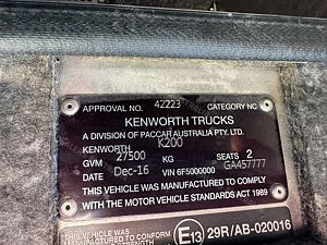This 2016 Kenworth K200 Big Cab 6x4 Prime Mover **SERVICE HISTORY** is currently listed for sale in a live online auction. The auction closes at 8:00pm AET this Thursday, 11th of December 2025 unless extended by late bids.