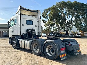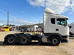 This 2014 Scania G440 6x2 Prime Mover is currently listed for sale in a live online auction. The auction closes at 8:00pm AET this Thursday, 2nd of October 2025 unless extended by late bids.