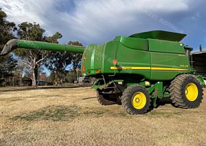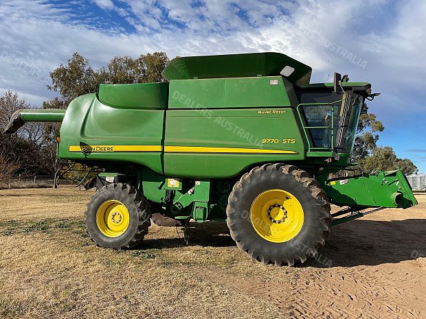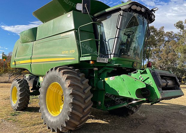 John Deere 9770 STS Combine Harvester, 3396 engine hours, 2637 rotor hours, 800/70R38 drive tyres, 480/70R30 steer tyres, no GPS gear, comprehensive service records, John Deere 640D Front, draper, Comb Trailer, preseason repairs being carried out, good condition, located near Spring Ridge NSW, price includes GST