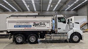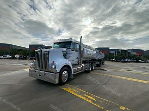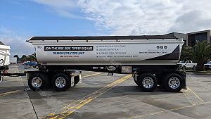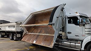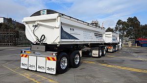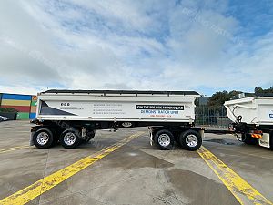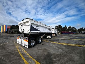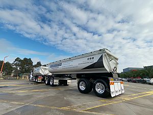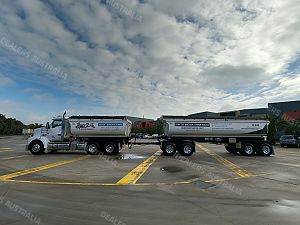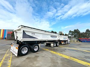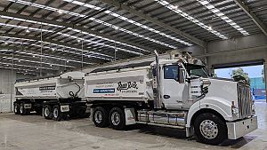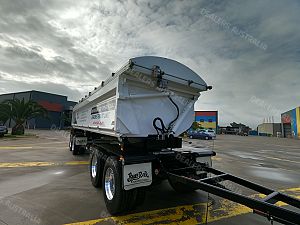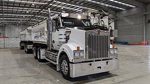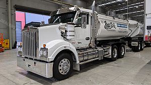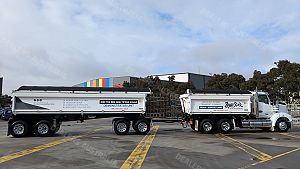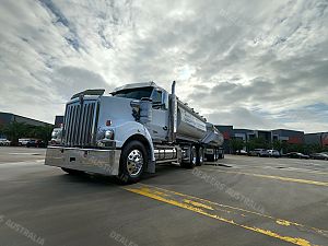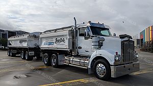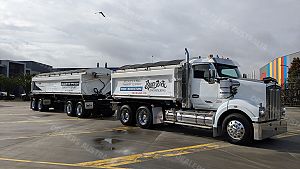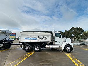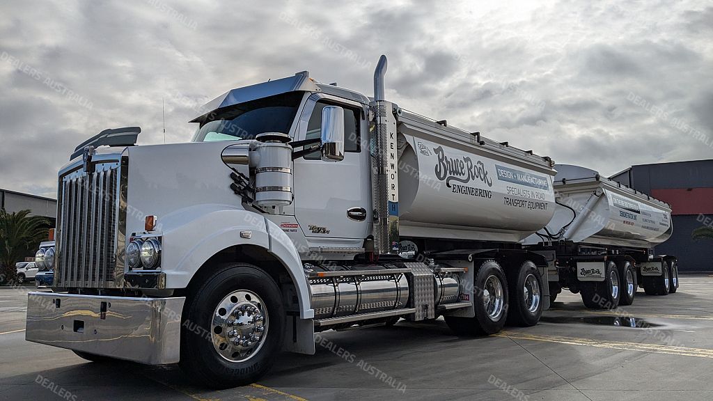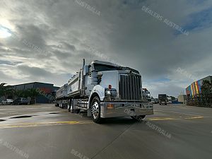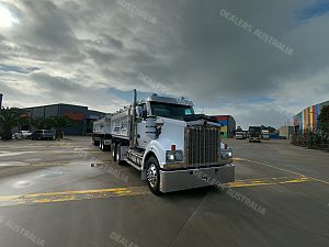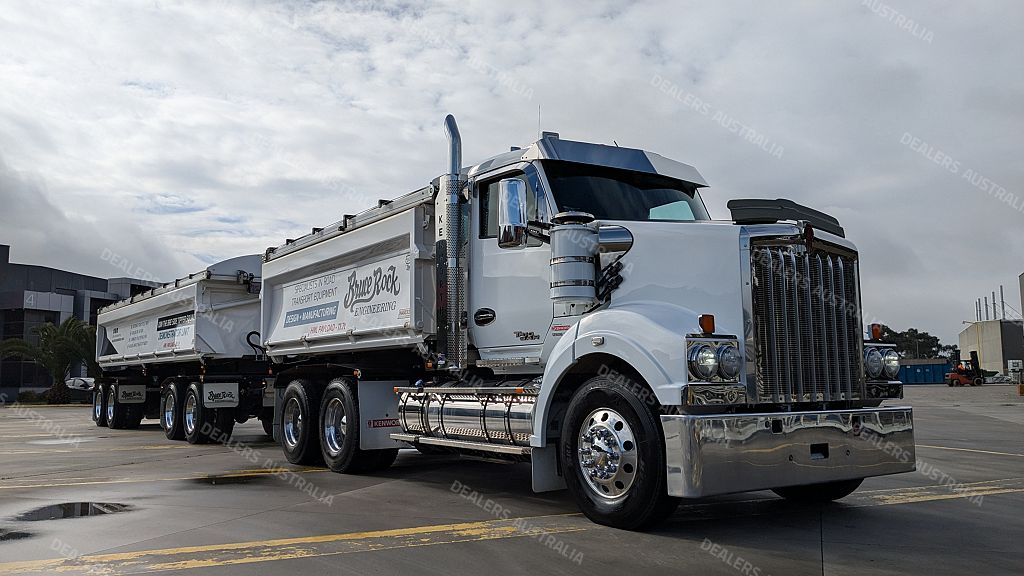 2023 Kenworth T610 SAR with Bruce Rock Engineering Side Tipping Rigid and 4 Axle Dog Trailer