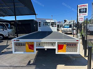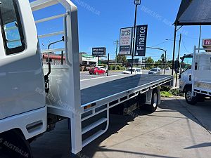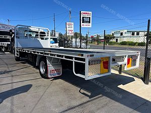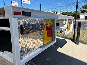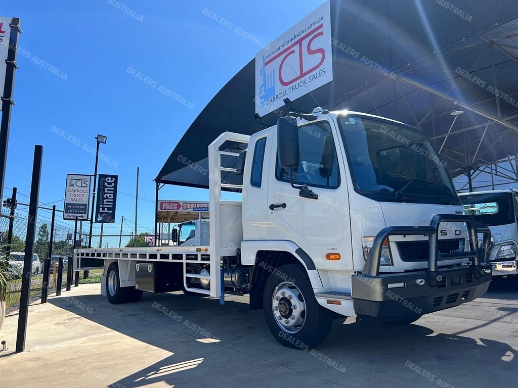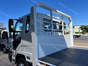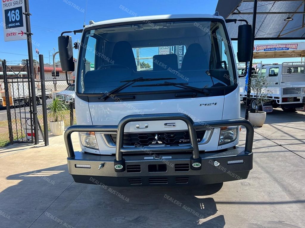 2024 MITSUBISHI FUSO FIGHTER 1424, TURBO INTERCOOLED 240 HP, 6-SPEED MANUAL, P/S A/C. Immaculate truck only travelled demo Klms and is fitted with NEW 6.7m Steel tray and many extras including Ultimate Bullbar, floor drains in tray and toolbox.