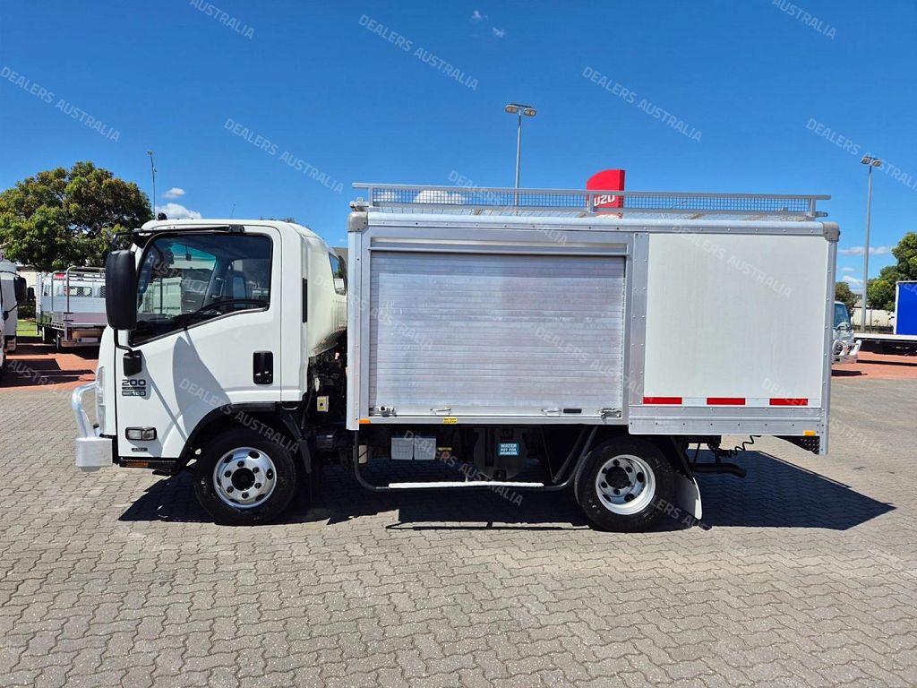 This ex-government Low Low klm Car License Service Body, features an Isuzu Heavy Duty Alloy Bullbar with Towpin, Fully enclosed Service Body, with Rear Hydraulic Slide out Drawn system with Workbench, with Drivers and Passenger Suspension Seats.