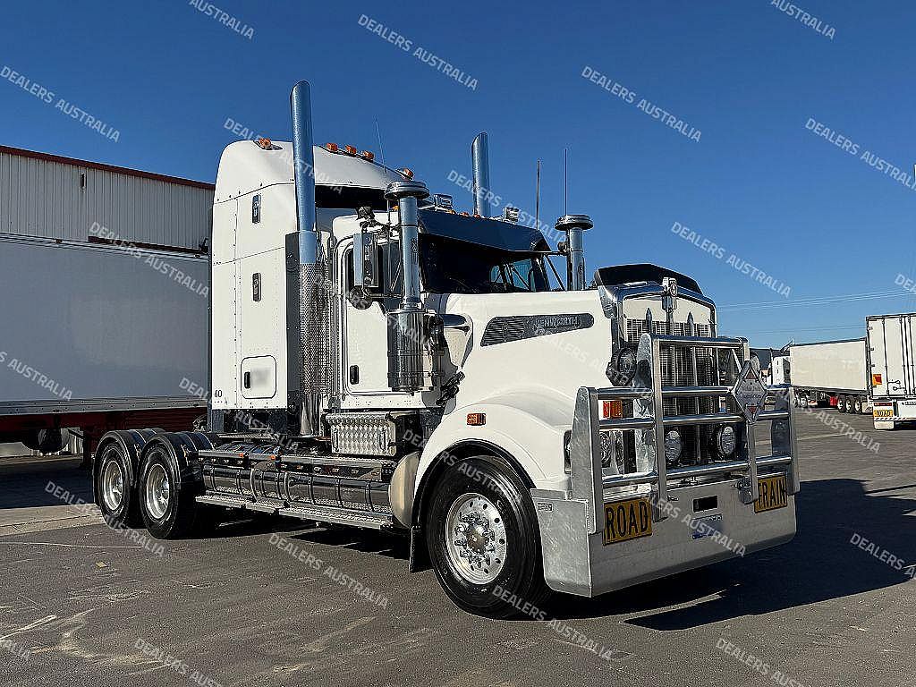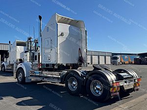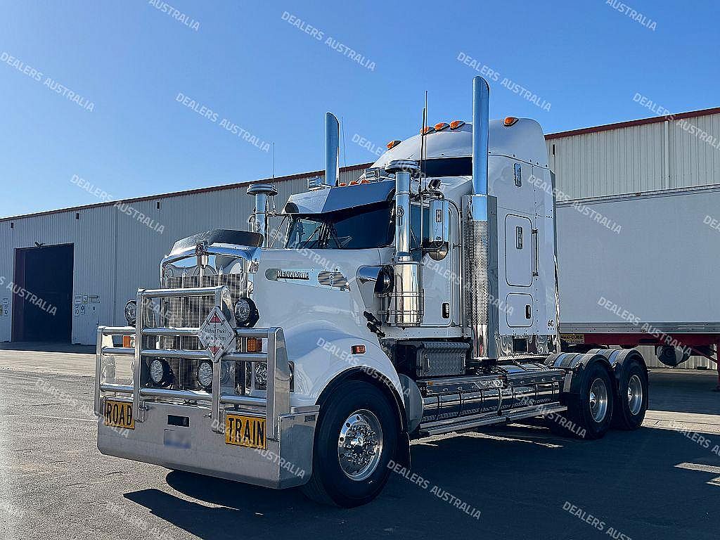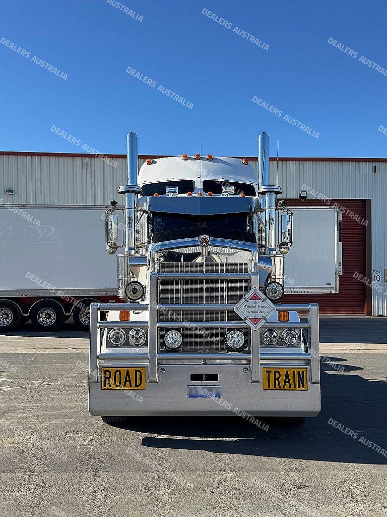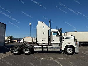 2015 Kenworth T909 6x4 Prime Mover, Cummins ISX E5 Engine @ 550Hp, 18 Speed Road Ranger Transmission, Meritor RT46-160 Rear Axles on Kenworth Air Glide Air Bag Suspension, Polished Alloy Bull Bar with LED Spot Lights, Plastic Bug Off, Stainless Steel Drop Visor, Dual Exhaust 10 Stud Alloy Wheels with Super Singles to the Steer, Square Tanks, Stainless Steel Drive Guards, Aero Kit with Wings, Holland Fixed QRTT, Custom Air Bunk Cooler, Chassis Deck Plate, Maroon Diamond Stud Trim, Air Ride Drivers Seat, Wood Grain Dash, Radio Cd Player, A/C, Power Steering, Turbo Timer, Microwave,