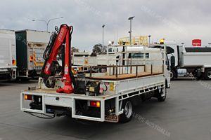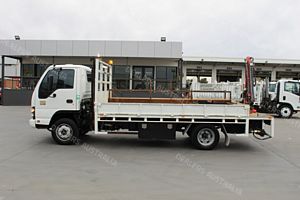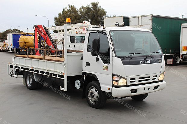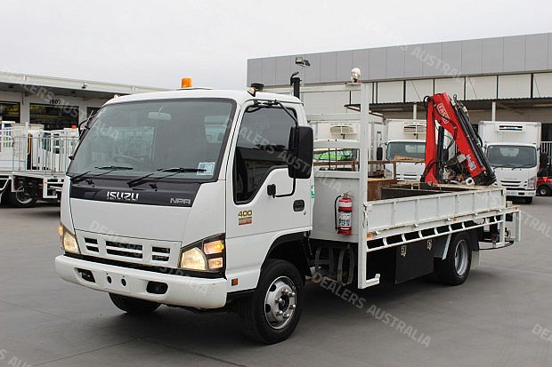 2005 Isuzu NPR 400 Tray with Crane. Body Measures 4.57m (L) x 300mm (H) x 2.4m (W). Fitted with FASSI Micro 30 Crane with 995kg Lifting Capacity at 1.5m and 635kg at 4.7m, Drop Down Sides, Tow Bar, Electric Trailer Brakes, Amber Beacon Lights, LED Lightbar as Worklight, Air Conditioning, Stereo, Power Windows, 6 Speed Manual Transmission, 150HP Isuzu Turbo Diesel Engine, Travelled Only 108,412kms!!
