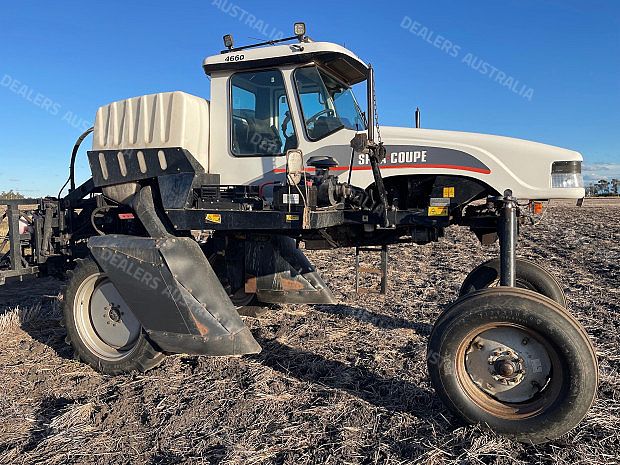 SpraCoupe 4660 Sprayer, 2009 model, 2271 hours, 1500 litre tank, 24 metre boom (currently set up 20.5m), Perkins engine, Allison 4 speed auto, 2 metre wheel centres (kit to make it to 3 metre centres), full shield kit w/ belly plates and front/rear wheel shields, spares included, one owner, always shedded, good condition, near Dalby QLD, includes GST