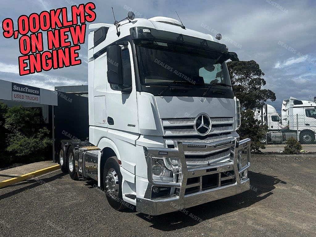 2019 Mercedes-benz Actros 2658 prime mover, m-benz 580hp ** only 9000klms on new engine ** auto transmission, m-benz diffs, 90 tonne rated, abs, integrated high roof sleeper with refrigerated cooler, alloy bullbar, alloy rims, ex fleet truck in excellent cond , comes with vic RWC & 3 months or 50,000klms drive-line warranty !