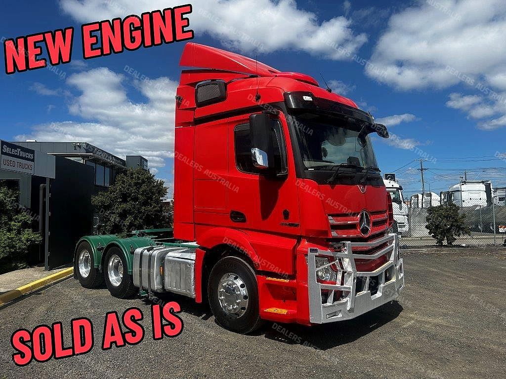 2021 Mercedes-benz Actros 2663 prime mover, M-benz 630hp engine **250,000 klms on new engine ** auto trans, M-benz diffs, 90tonne rated, abs, integrated high roof sleeper with viesa cooler, alloy bullbar, alloy rims, ex major fleet truck . ** TRUCK IS SOLD AS IS WHERE IS NO RWC OR WARRANTY **