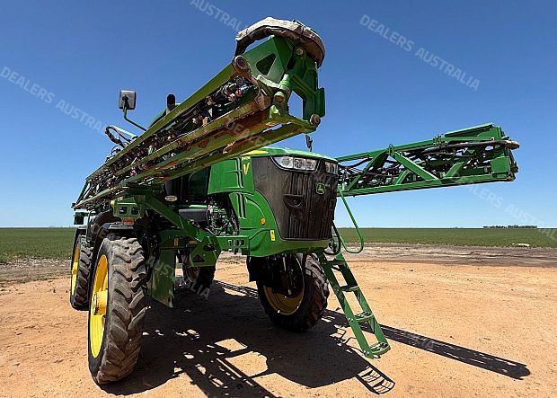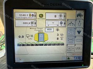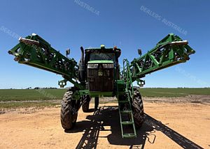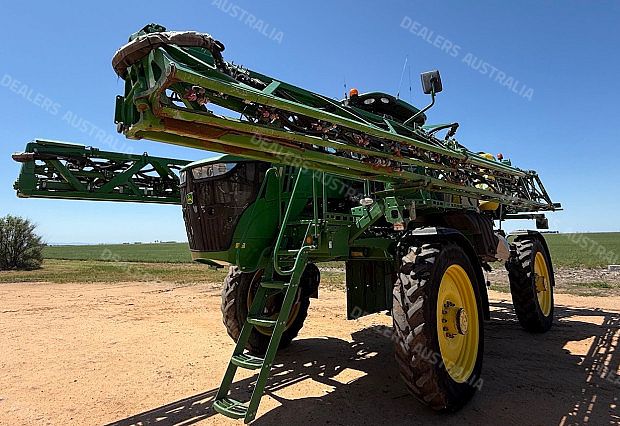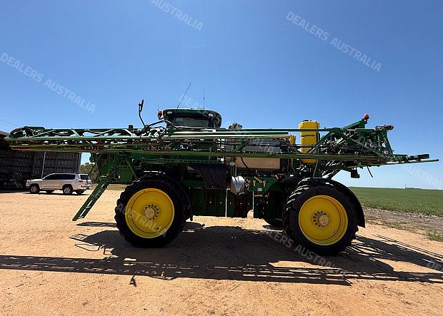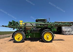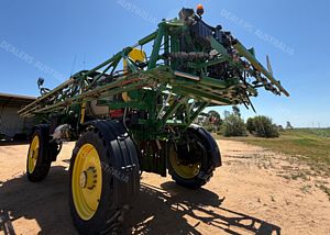 John Deere R4038 Sprayer, 2016 model, 5146 hours, 36 metre steel boom, 4000 litre stainless steel tank, 420/80R46 tyres rear 90% rubber front 40% rubber, GS3 screen w/autotrac and Section control, no GPS receiver, weather station, chemical injection tanks and pump (not used in recent times), one owner, good condition, near Dalby QLD, includes GST
