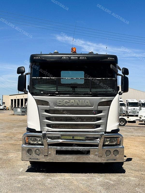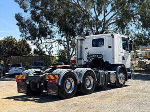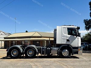 Tidy Scania G440 prime mover with PTO hydraulics, JOST ballrace turntable and full highway setup — ready for B-double or general freight applications.