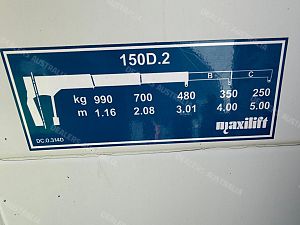 Maxilift 150 D.2 crane – lifts 990kg @ 1.16m and 480kg @ 3m