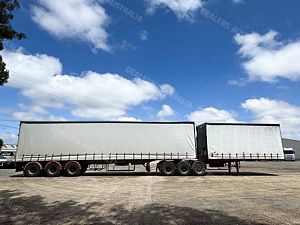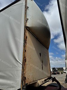 1995 Kruger 22 Pallet Flat Deck Curtainsider, Triaxle Airbag Suspension, K Hitch Axles, 10 Stud Rims, Red Radius Guards, Double Rear Doors, 2 Toolboxes, 50mm Road Train Coupling with Air & Electrics at Rear, Dual Spare Wheel Carrier, Gate Carrier, NIL Gates, Load Binders in Track