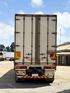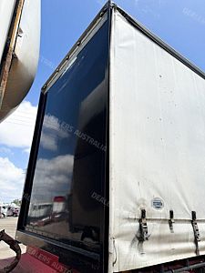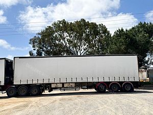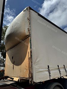 1995 Kruger 22 Pallet Flat Deck Curtainsider, Triaxle Airbag Suspension, K Hitch Axles, 10 Stud Rims, Red Radius Guards, Double Rear Doors, 2 Toolboxes, 50mm Road Train Coupling with Air & Electrics at Rear, Dual Spare Wheel Carrier, Gate Carrier, NIL Gates, Load Binders in Track