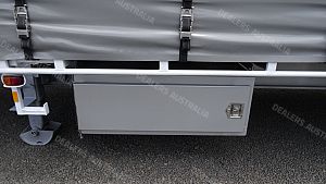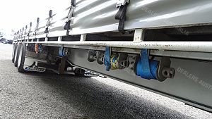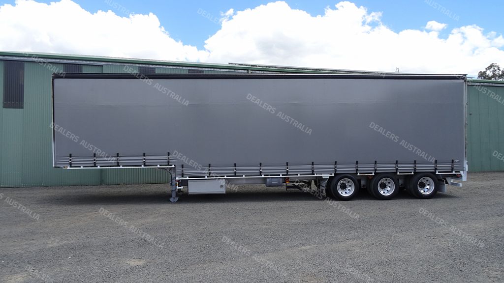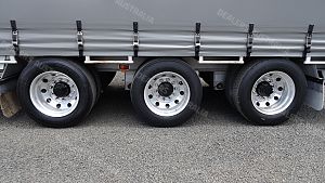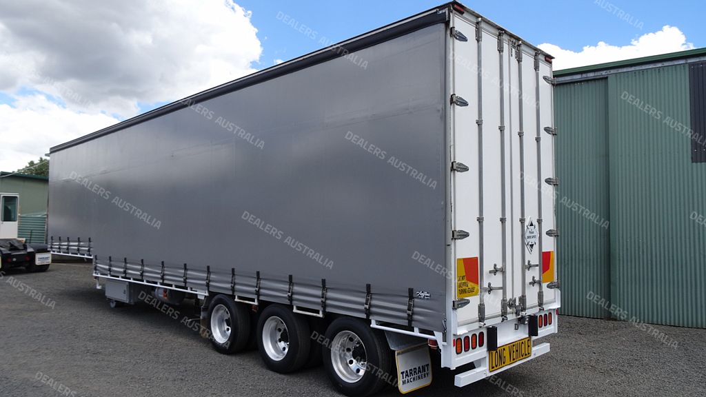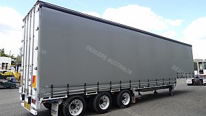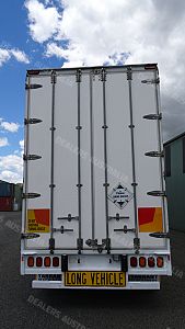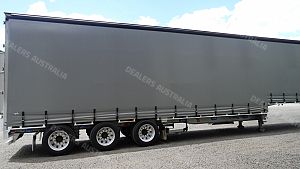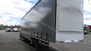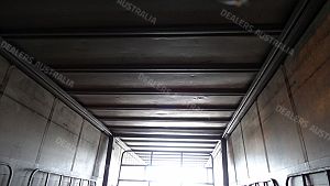 KRUEGER 45FT DROPDECK CURTAINSIDER WITH MEZ FLOORS, YEAR-1/1999, ST3-38, TRI AXLE ON AIR BAG SUSPENSION, 10 STUD ALLOY RIMS, NEAR NEW CURTAINS FITTED, REAR BARN DOORS, BOLT ON SKID PLATE WITH BOLT IN KING PIN, NSW RWC, TOP DECK IS 3.78M LONG, BOTTOM DECK IS 9.73M LONG, 3.14M HIGH INSIDE ON BOTTOM DECK, 400MM STEP UP TO TOP DECK, 9.4M LONG FROM KING PIN TO CENTRE AXLE, 2.85M FROM CENTRE AXLE TO REAR, 1.5M FROM KING PIN TO FRONT OF TRAILER, WATER TANK FITTED, DUAL TYRE CARRIER, LED LIGHTS, 11 STRAPES ON SLIDING TRACK, K HITCH AXLES, VERY TIDY TRAILER FOR AGE, S/N-2256. PRICE $39900.00 INC GST.