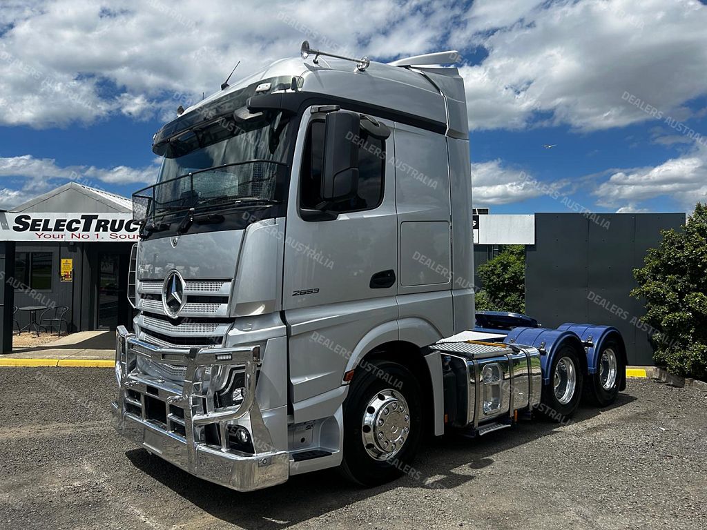 ** CHOICE OF 2 ** 2022 Mercedes-Benz Actros 2653 6x4 prime movers, M-benz 13ltr engines 530hp ** 340 & 405,000klms ** auto trans, m-benz diffs, abs, 70 tonne b-double rated, integrated sleepercabs with bunk coolers, alloy bullbar & rims, comes with vic RWC & 3 months or 50,000klms drive-line warranty ! excellent cond one owner trucks with mercedes service history ....