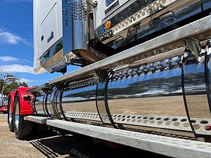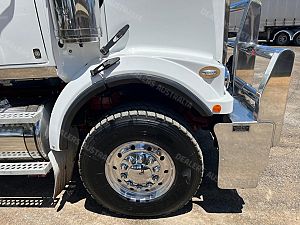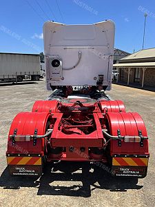 Detroit DD15 @ 560hp, Step Up Engine Rebuild Aug. 22, 200,000kms Ago, 18 Speed Manual ( RTLO20918B) Gearbox, Meritor RT46-160GP Rear Axles on Airliner AL46 Airbag Suspension, Alloy Wheels with Super Singles to the Steer, Plastic Circle Guards, 2" Fixed Holland QRTT, 54" Stratosphere Sleeper with Autoclima Bunk Cooler, Alloy FUPS Bull Bar, Tipper Hydraulics, UHF, Radio/CD, Very Tidy Unit with Engine Rebuild History & 106 Tonne B Double/Road Train GCM.