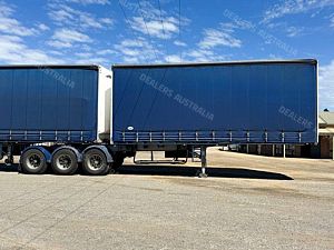 2021 Maxitrans ST3 Flat Deck B-Double Curtain Side Combination, Maxus Axles on Maxitrans AirMax Air Bag Suspension, Nose Cones, Straight Deck, Tie Rails, Maxus Manual Landing Legs, Plastic Wheel Guards, Gate Carriers, RightWeigh Weight Scales on B-Trailer, Under Body Tool Boxes, Water Tanks, Barn Doors on B-Trailer, 10 Stud Wheels, Sliding Load Binders (No Straps), Jost Fixed QRTT, Gates as Seen in Photos, RingFeder Plate in B-Trailer, Chequer Plate Floor,