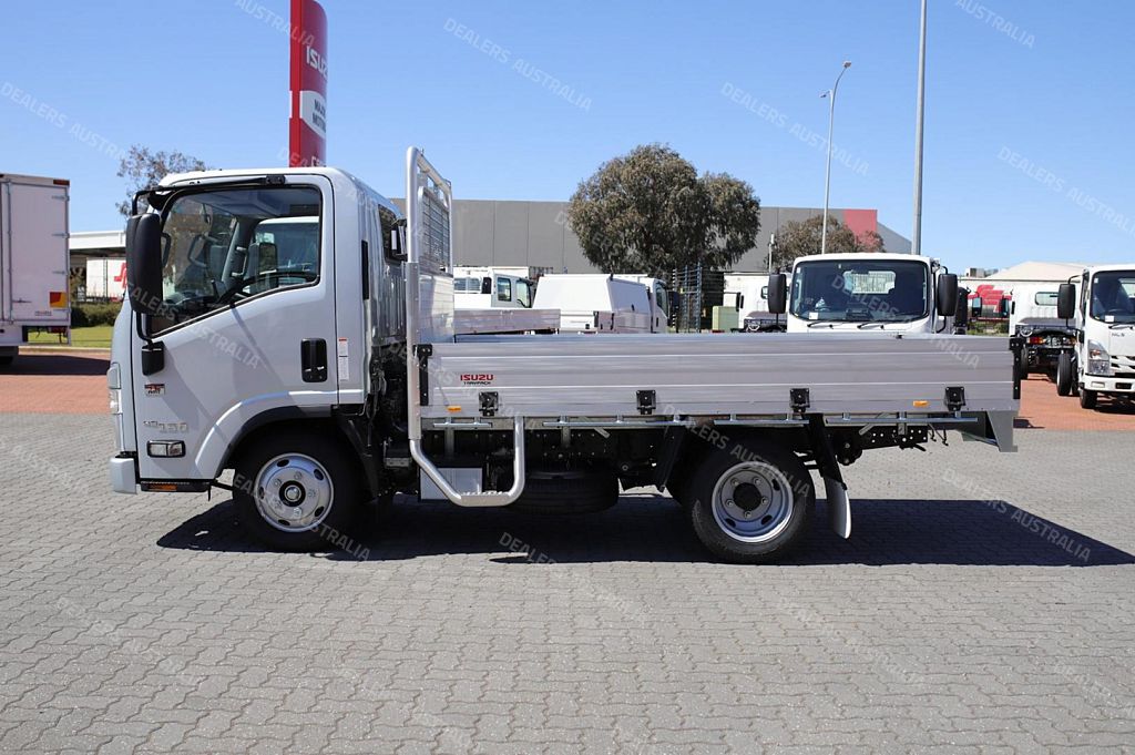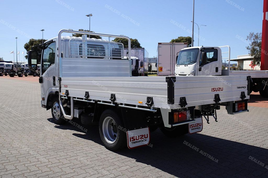 Ex Isuzu Demo (MY21) 2021 Model Isuzu NLR45-150 AMT SWB Traypack! Complete with a 3.2m Drop Side Heavy Duty Alloy Tray (4450mm Internal) with Reverse Camera, Digital Radio, ready to go at
