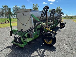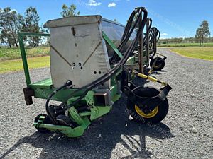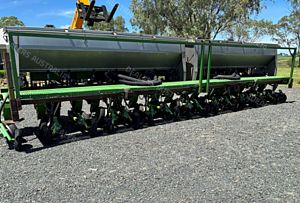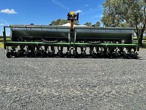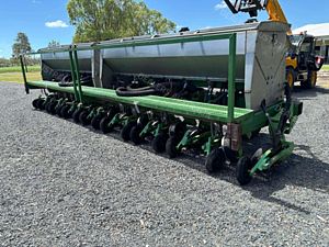 Boss Ag Single Disc Drill, 8 metre working width, 3 point linkage attachment, 7x7 tool bar with over beam, 2 x toolbar gauge wheels, 16 x Boss SX25 single disc planter units, 500mm row spacing, mounted Stainless seed and fertiliser bins, ground drive, air kit with diffusers, rear gantry, excellent condition, near Toowoomba QLD, includes GST