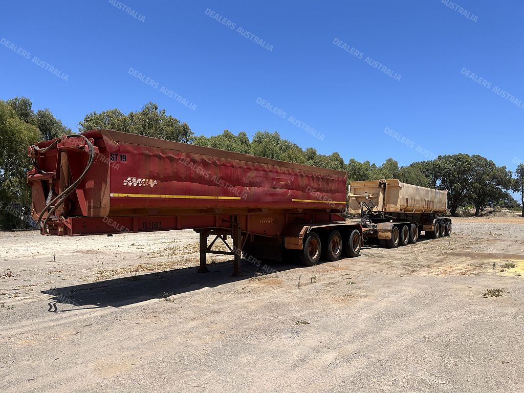 Sidetippers- Double Set- Mick Murray, 2007 lead, 2002 6 axle dog on airbag drums and spiders. Worked hard, registered in WA.