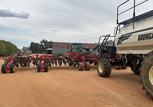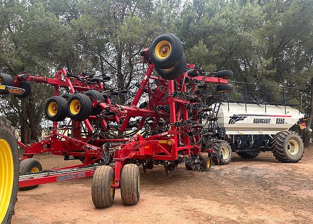 Bourgault 3320 Planter, 2019 model, PHD model, 60ft (18 metre) working width, 5 section fold bar, 12 inch tyne spacing, parallelogram tyne, double shoot, air kit, head blockage monitors, planter parallelograms rebushed, Bourgault 6550 Air Cart, trailing, 19500 litre, incab monitor and control, competitive freight available, good condition, near Deniliquin NSW, includes GST