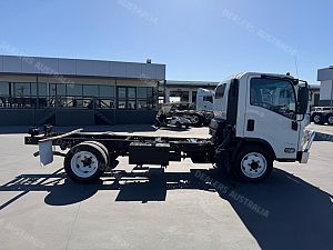The chassis measures 4100mm long x 840mm wide, making it ideal for a wide range of body or tray configurations. Fitted with a 140L fuel tank for extended range, along with a genuine Isuzu bullbar and spotlights, it’s ready for both urban and regional work.