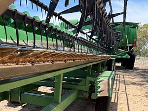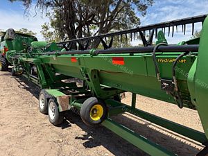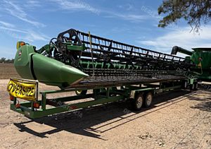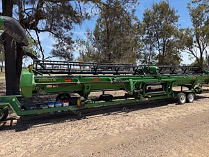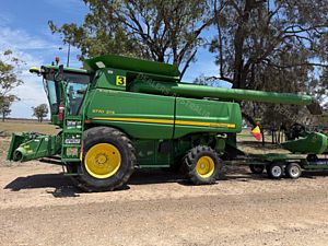 John Deere 9770 STS Combine Harvester, 3401 rotor hours, 5253 engine hours, 3 speed transmission, John Deere 2630 screen, SF3000 (SF1) receiver (not in photo), good recent service history, John Deere 640D Front, 2012 model, 40ft, cross auger, Badengi Comb Trailer, no brakes, good condition, near Goondiwindi QLD, includes GST