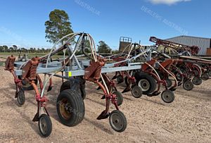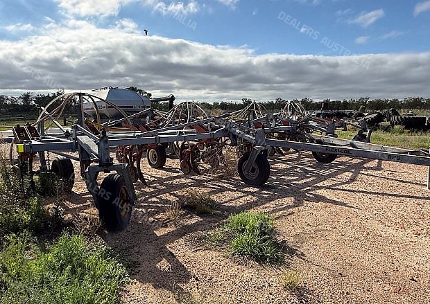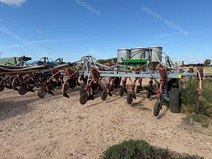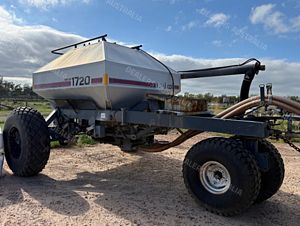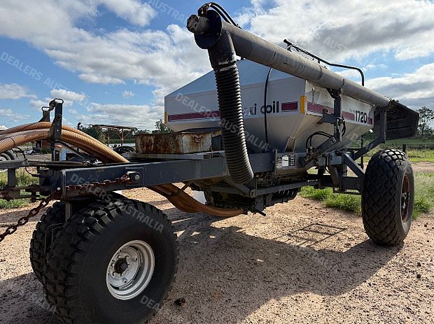 Flexicoil 820 Planter and Flexicoil 1720 Air Cart, 12 metre, 3 section folding bar, 36 x Flexicoil spring release tynes, 333mm tyne spacing, tyne mount presswheels, adapters and narrow points, air kit, Flexicoil 1720 Air Cart, trailing, trike, auger, flotation tyres, 6000 litre, 2 bin, cab monitor and control, good condition, near Millmerran QLD, includes GST