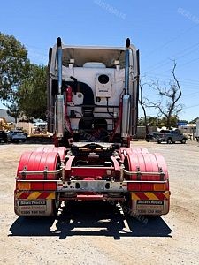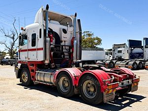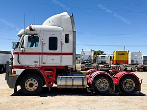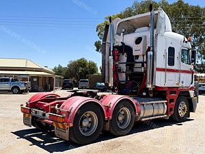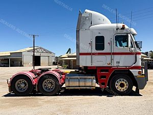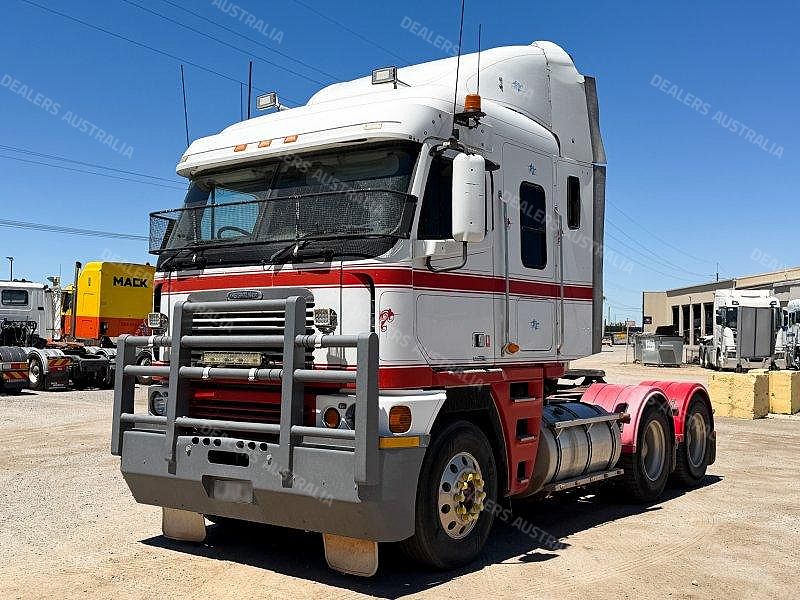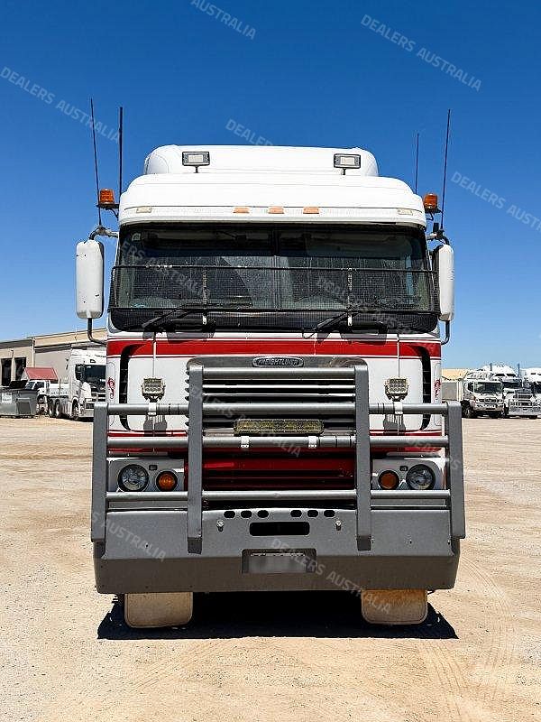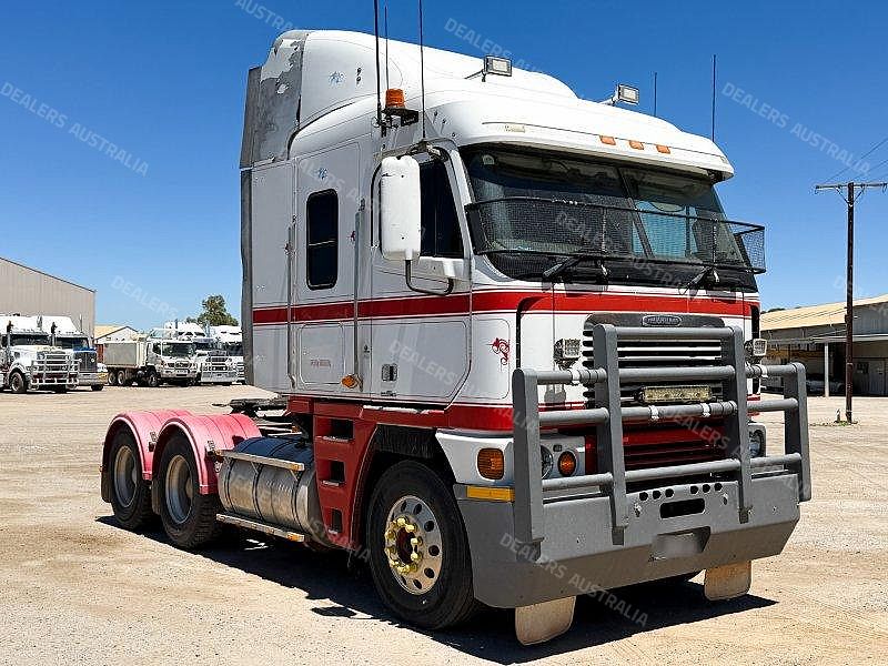 2003 Freightliner Argosy 6x4 Prime Mover, Detroit Series 60 14L Engine @ 575Hp, 18 Speed Road Ranger Transmission, Meritor RT46-160 Rear Axles with Cross Lock to Rear Axle on Airliner Air Bag Suspension, Alloy Bull Bar with LED Spot Light/Light Bar/Tow Pin, Mesh Stone Guard, Sun Visor, Aero Kit with Wings, 10 Stud Alloy Wheels, Round Tanks, Chassis Walk Plate, Plastic Drive Guards, Jost Fixed QRTT, Twin Stacks, AutoClima Bunk Cooler, Fire Extinguisher Behind Cab, Battery Isolator, Electric Cab Tilt, Air Ride Drivers Seat, Wood Grain Impersonator Dash, Gear Shift Lever Extension, TV and Microwave in Bunk, UHF x2, Cupboards to Bunk, Over Head Storage,