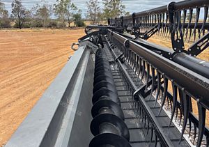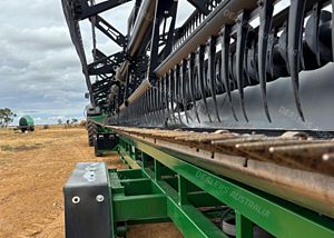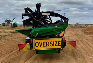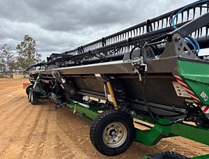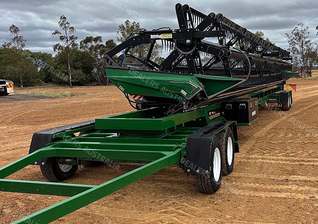 Midwest Durus Premium Combine Front, 2016 build, draper front, 45ft cut, tyne reel, top cross auger, Custom Built Comb Trailer, 2022 build, contractor spec, lots of spares inc knife and new wobble box (wobble boxes on front recently rebuilt), stored in shed, excellent maintenance program, sorghum trays available for extra, excellent condition, near Roma QLD, includes GST