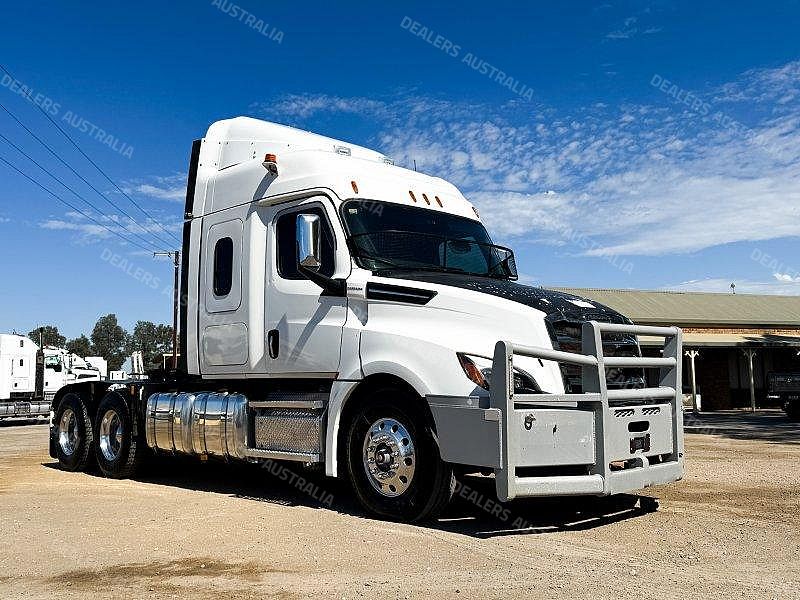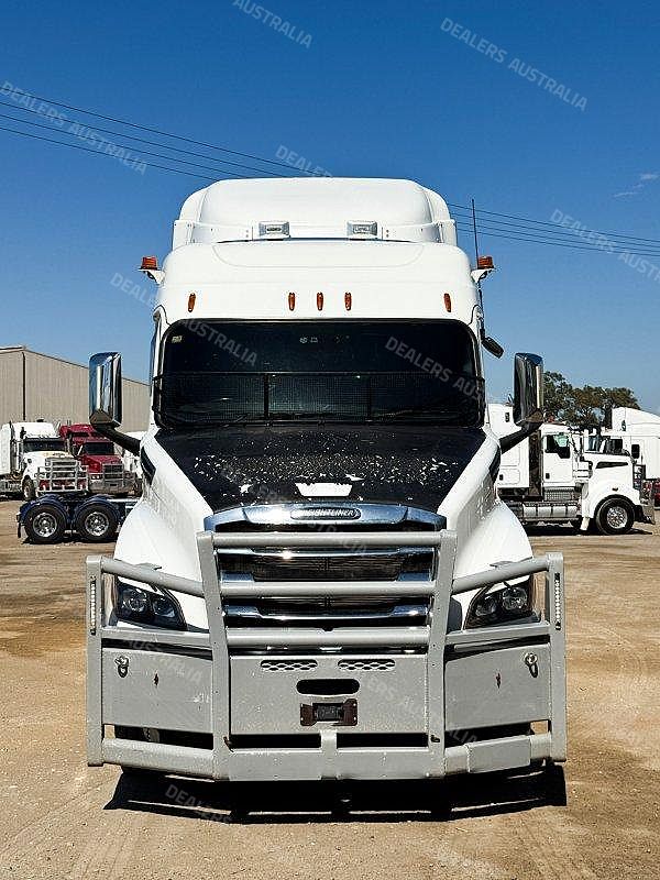 2021 Freightliner Cascadia 6x4 Prime Mover, Detroit DD16 Engine, DT12 Automated Transmission, Airliner Airbag Suspension, Meritor Rear Axles, 10 Stud Alloy Rims, Yard Pull at Rear, Dual Exhausts, Bullbar, Icepack, Fixed 90mm K Hitch Turntable, Walkplates, Toolboxes, Underbunk Drawer Fridge, Microwave, Rubber Guards, Mesh Stone Guard