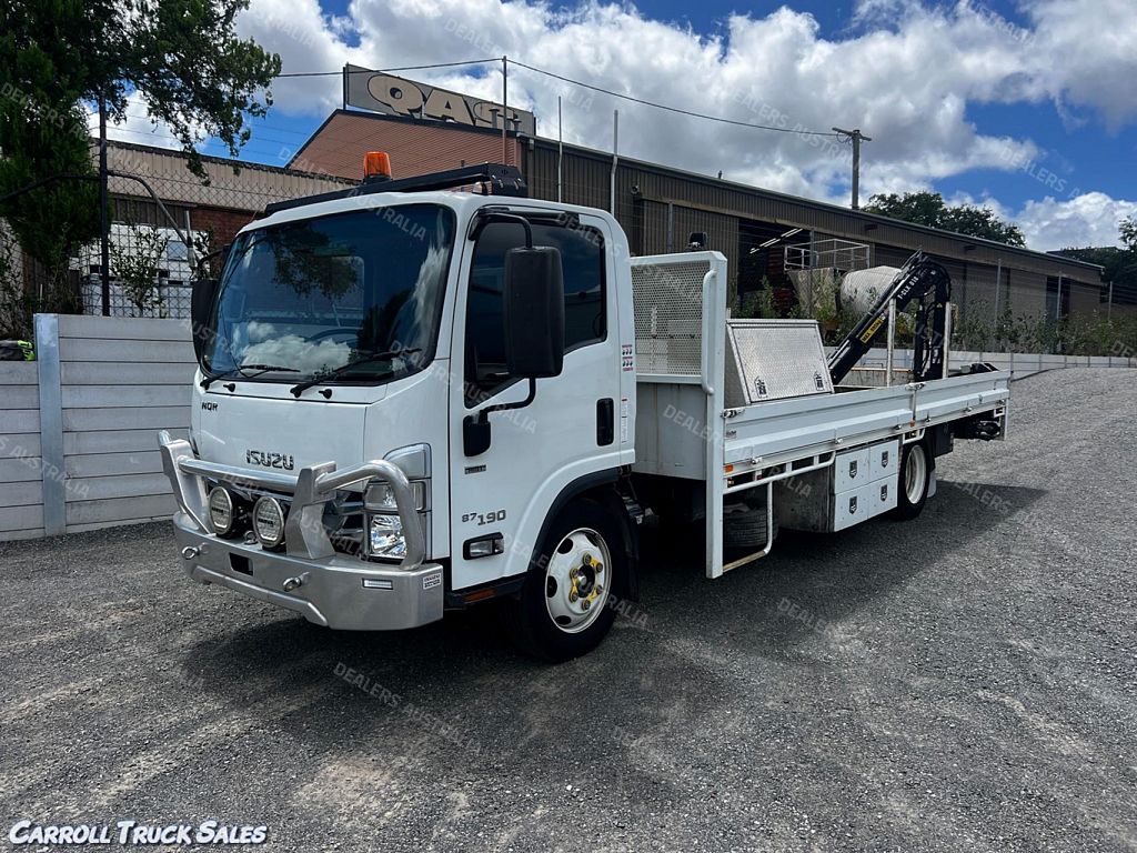 02/ 2022 ISUZU NQR 87-190, TURBO INTERCOOLED 190 HP, AUTOMATIC TRANSMISSION, P/S A/C. Immaculate truck fitted with drop-side steel tray and with hiab crane. Extras include: Steel Tray, Drop-sides, Hiab T-CLX 018 Crane- 995 Kgs @ 1.2m - 610Kgs @ 3.0m, Revolving lights, work lights, Below tray Draws x 4, Above tray tool box, Alloy Bullbar, MK2 Narva Driving Lights, Seat covers, Floor mats, UHF PLUS MORE!! Truck presents in excellent condition and drives great. Will be fully detailed and put through workshop.
