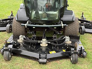 -Individual hydraulic deck motors with self-lubricating integral bearings deliver reliable cutting power to each blade and require no tensioning or greasing maintenance of belts and pulleys.
