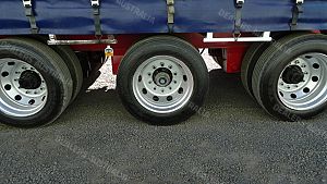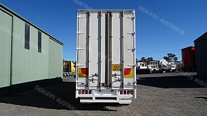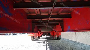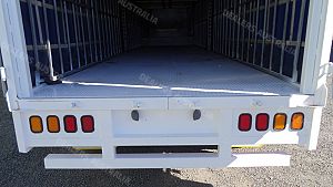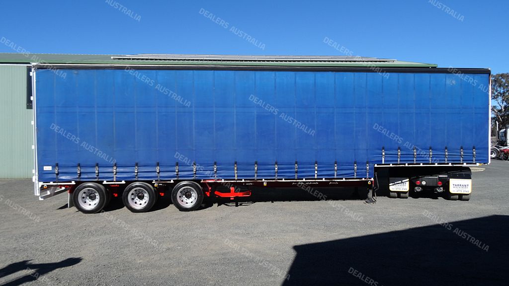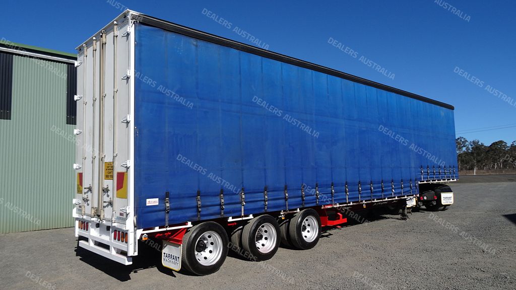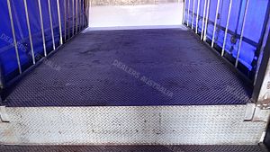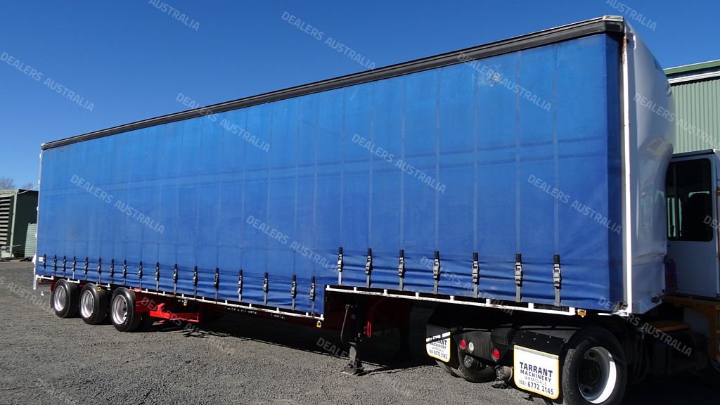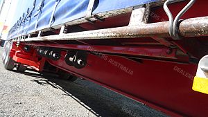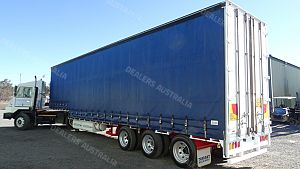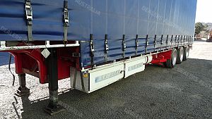 KRUEGER ST-3-38 DROP DECK CURTAINSIDER, YEAR - 4/2004, 38T ATM, DROP DECK CURTAINSIDER WITH REAR BARN DOORS + MEZZ DECKS ON THE BOTTOM DECK, STEEL CHERPLATE FLOOR FROM FROUNT TO KING PIN 1500MM , FROM KING PIN TO CENTRE AXLE 9400MM, FROM CENTRE AXLE TO BACK 2900MM, INSIDE HEIGHT ON BOTTOM DECK 3130MM, TOP DECK LENGTH 3760MM, STEP DOWN 420MM, BOTTOM DECK LENGTH 9720MM, BOLT ON SKID PLATE + BOLT IN KING PIN, RUNNING 255/70R 22.5 ON 10 STUD STEEL RIMS, AIRBAG SUSPENSION, S/N- 2072, PRICE - $ 45900.00 INC GST, LOCATED IN NSW