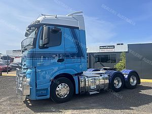 2017 Mercedes-benz actros 2663 6x4 prime movers, M-benz 630hp engines, auto transmission, M-benz diffs, 90 tonne b-double rated, abs, integrated high roof sleeper cabs , alloy bullbar, alloy rims, very well looked after ex one owner truck with service history , ** SOLD AS TRADED **