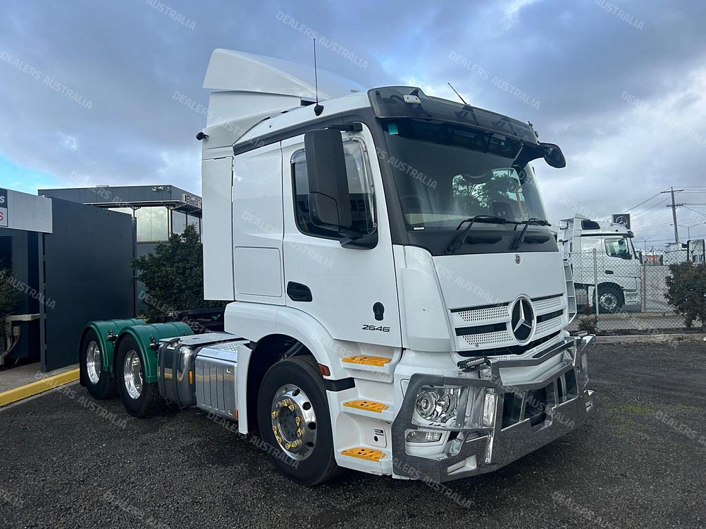 ** CHOICE OF 5 ** 2021 Mercedes-Benz Actros 2646 6x4 prime movers , M-benz 460hp engines, auto transmissions, M-benz diffs, 62500T b-double rated, abs, integrated low roof sleeper cabs , alloy bullbar, alloy rims, these are ex major fleet trucks with full service history , comes with 3 months drive-line warranty & Vic RWC !