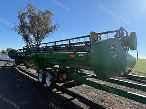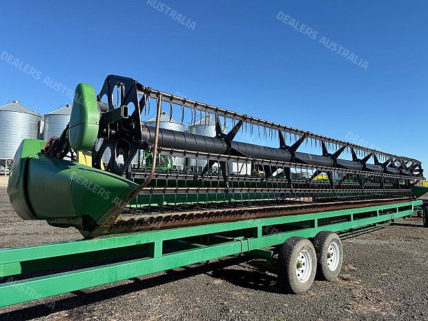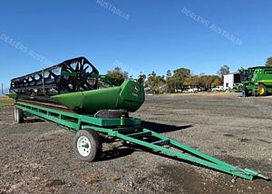 John Deere 635D Combine Front, draper front, 35ft cut, tyne reel, cross auger, air reel that will go with front, Custom Built Comb Trailer, non braked trailer, front preseason has been carried out, field ready, good condition, near Warialda NSW, includes GST