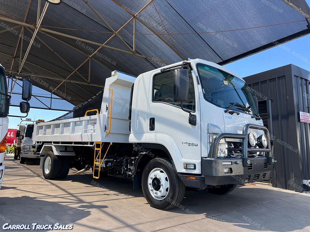 05/ 2022 ISUZU FSR 140-260, TURBO INTERCOOLED 260 HP, 6-SPEED MANUAL, P/S A/C. This truck is fitted with Factory Tipper Body (Internal Dimensions: 4400mm L x 2285mm W x 520mm H sides) along with some neat extras including: Floormats, Seat covers, Redarc Electric Brakes/ Air Brakes, Pintle hook, ABS Trailer Braking, Reverse Camera, Roll Back Tarp, Bullbar, Narva Driving Lights PLUS MORE!! Presents in immaculate condition having only travelled a GENUINE 54,336 Kms and drives great. WOULD SUIT NEW TRUCK BUYER.