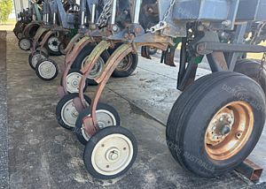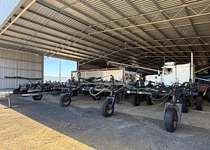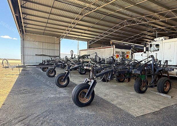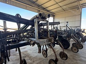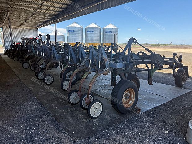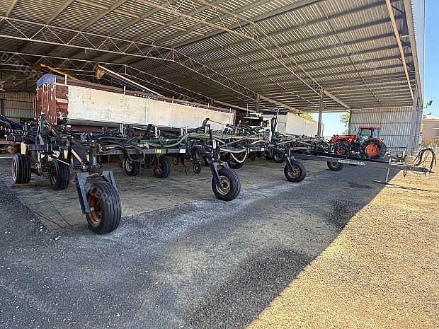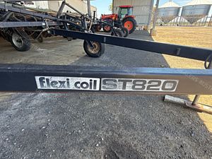 Flexicoil 820 Planter, trailing, 2002 model, 18 metre working width, 5 sction folding bar, 36 x planting tynes, Flexicoil spring release tyne heads with Janke adjustable tynes and narrow points, 500mm spacings, 650 ft lbs force break out, John Shearer trashworker hydraulic tynes fitted to rear with presswheels, new seals and rods on folding rams, 4 new tyres fitted, numerous spares, stored in shed, good condition, near Capella QLD, includes GST