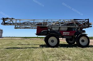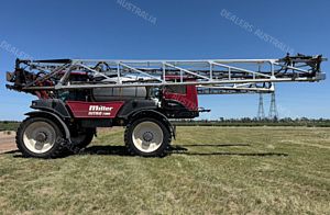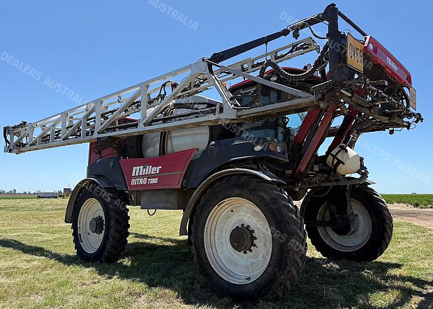 Miller Nitro 7380 Sprayer, 2021 model, self propelled, 6100 litre tank, 54 metre alloy boom (can be reduced to 48m), 4520 hours, single direct injection, 3 x 750 litre chemical storage tanks, auto lube, John Deere SF6000 receiver, John Deere Gen 4 screen, weather station, one owner, good condition, near Dalby QLD, includes GST