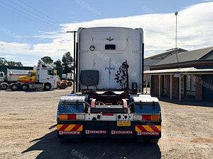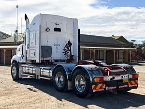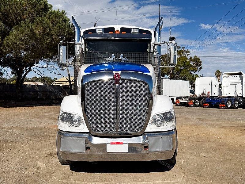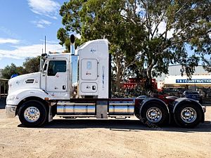 2014 Kenworth T409 6X4 Prime Mover. Cummins ISX E5 @ 550HP, 18 Speed Road Ranger, dana rear axles on Kenworth 8 bag air suspension, polished alloy bar, super singles to steers, stainless sun visor, blue bug deflector, mesh stone guard, load lights, polished alloy tanks, integrated sleeper, VIESA bunk cooler, auto greaser, battery isolator, tipper hydraulics, fire extinguisher, chassis walk plates, Jost greaseless turntable, stainless drive guards, LED taillights, quad KW mudflaps.