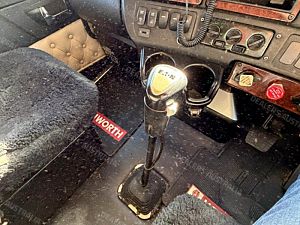 cream diamond stich interior, Twin UHF radios, KW Smart wheel, in cab tipper controls, under bunk fridge slide, turbo timer, interaxle lock.