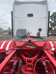 07/2015 Kenworth T409 6x4 Prime Mover, 550 HP Cummins ISX E5 Eng - Has Cummins Engine History - 18 speed auto shift trans - FO-20E318AAMXP - Merritor RT46.160 Rear Axles @ 4.30 on KW Airglide 460 Air Bag Suspension, Alloy Wheels and FUPS Bumper, 36" High Roof Integrated Sleeper with VISA Bunk Cooler, Right Weigh Load Scales, 2" Fixed QRTT, Alloy Walk Plate, Stainless Steel Drop Visor, Difflock, RAD / CD, UHF, Draw Fridge, B Double 97T Road Train Rated, this is a very tidy truck.