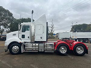 07/2015 Kenworth T409 6x4 Prime Mover, 550 HP Cummins ISX E5 Eng - Has Cummins Engine History - 18 speed auto shift trans - FO-20E318AAMXP - Merritor RT46.160 Rear Axles @ 4.30 on KW Airglide 460 Air Bag Suspension, Alloy Wheels and FUPS Bumper, 36" High Roof Integrated Sleeper with VISA Bunk Cooler, Right Weigh Load Scales, 2" Fixed QRTT, Alloy Walk Plate, Stainless Steel Drop Visor, Difflock, RAD / CD, UHF, Draw Fridge, B Double 97T Road Train Rated, this is a very tidy truck.
