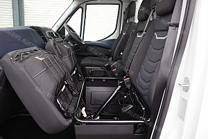 • Heated, Suspended & Adjustable Drivers Seat Bench Passenger seat with under seat storage and fold down table