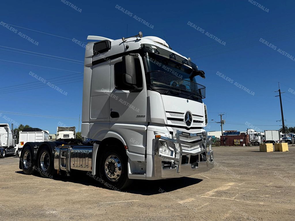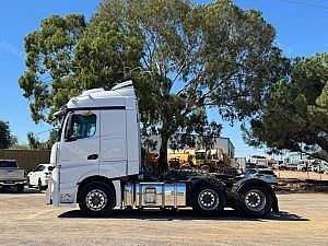 2019 Mercedes Benz 2663 6x4 Prime Mover, 630hp MB 15ltr Engine, 12 Speed AMT Transmission, MB Rear Axles on Airbag Suspension, FUPS Alloy Bullbar with Integrated Driving Lights, Fixed Holland Turntable with Nylon Top, Viesa Bunk Cooler, Stoneguard, 10 Stud Alloy Rims, Black Radius Guards, Underbunk Drawer Fridge, Air Ride Drivers Seat, Power Windows & Mirrors