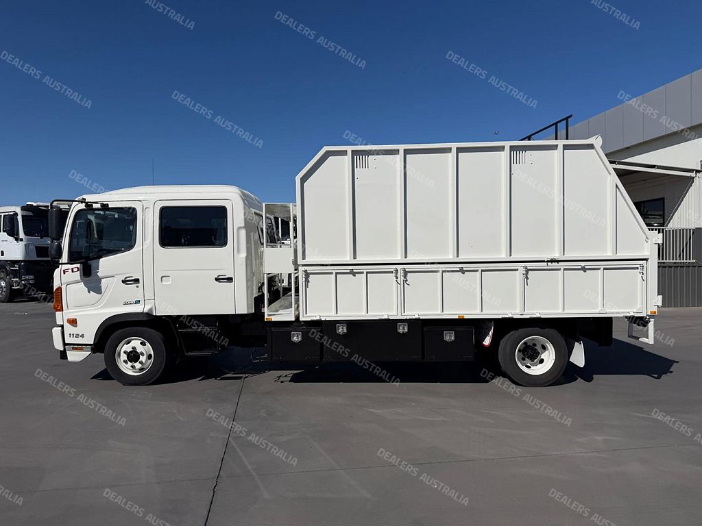 A well-equipped 2014 Hino FD 500 1124 Crew Cab Chipper Truck offering practicality, power and excellent storage options. Ideal for arborists, contractors, councils and landscaping crews.