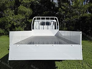 * Tray designed with durability in mind with box section drop sides, heavy duty flooring with aluminum chequerplate overlay