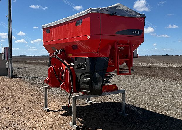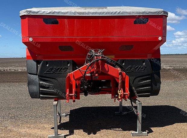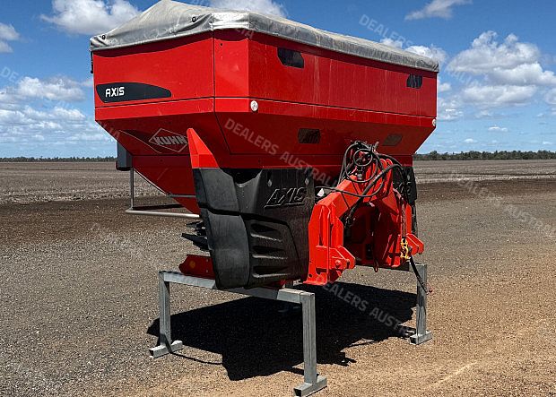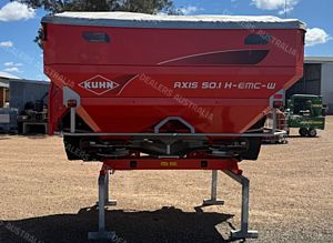 Kuhn Axis 50.1 Spreader, H-EMC-W model, single 4000 litre bin, 4000kg capacty, twin hydraulic drive spinners spread 18-50m, fitted with S12 discs (spare S8 disc's to go with machine), cat three hitch (upgraded from Euro hitch), weigh scales, ISO-bus connection,variable rate, operation book, poly bin cover, 680kg empty, parking stand, excellent condition, near Millmerran QLD, includes GST