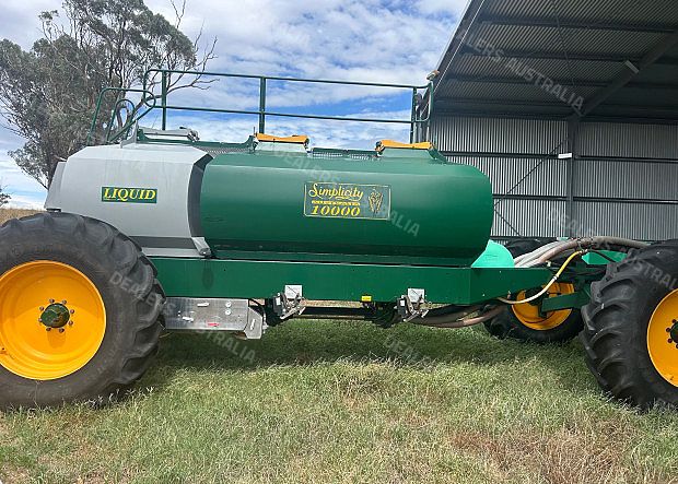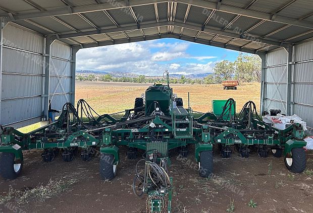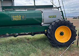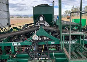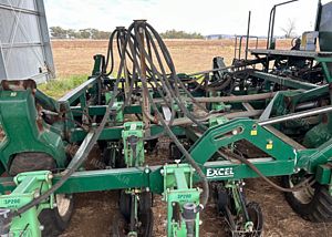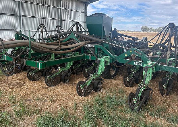 Excel Stubble Warrior, 2009 build, trailing, 30ft toolbar (9.14m), 36 x SP200 double disc planter units, 250mm rows, 4 bar deep, front row on 30 inch (12 units) - precision planter units, eSet metering, central commodity bin, Dickey John seed monitoring on each precision unit, ground drive, 24 x winter planting units on 15" rows, hydraulic fold frame, Simplicity Air Cart, 2009 model, trailing, quad steer, 10000 litre, 7000 litre seed/fert, 3000 litre liquid bin, variable rate with TopCon X25 monitor, good condition, near Willowtree NSW, includes GST