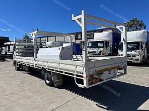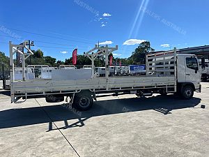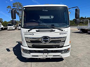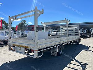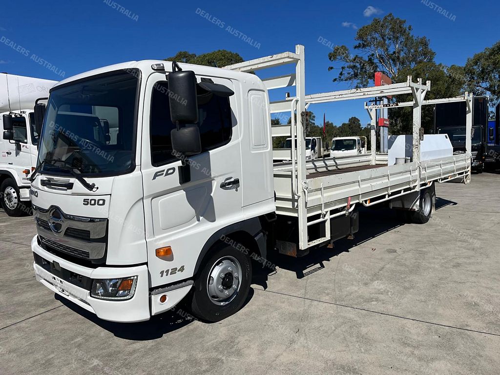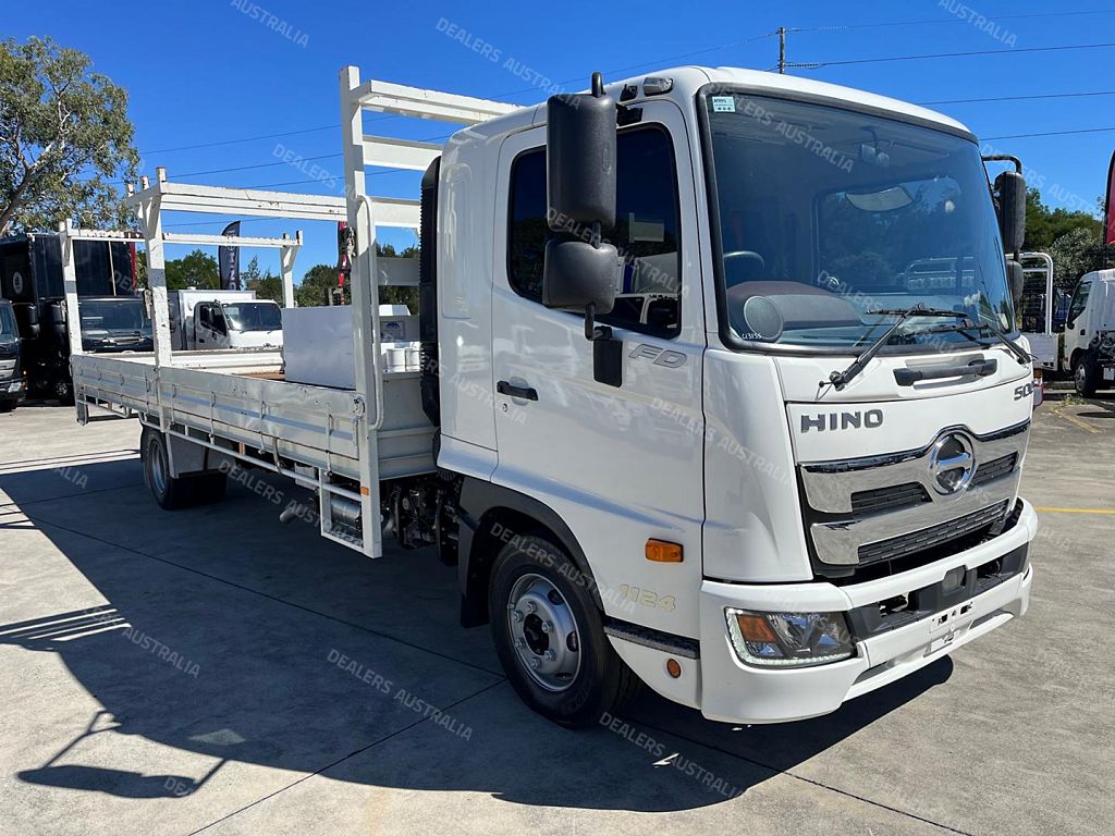 2022 Hino FD1124, 240Hp, 6 speed manual transmission, 7.1m steel tray with drop sides, Heavy duty racks, Toolbox.